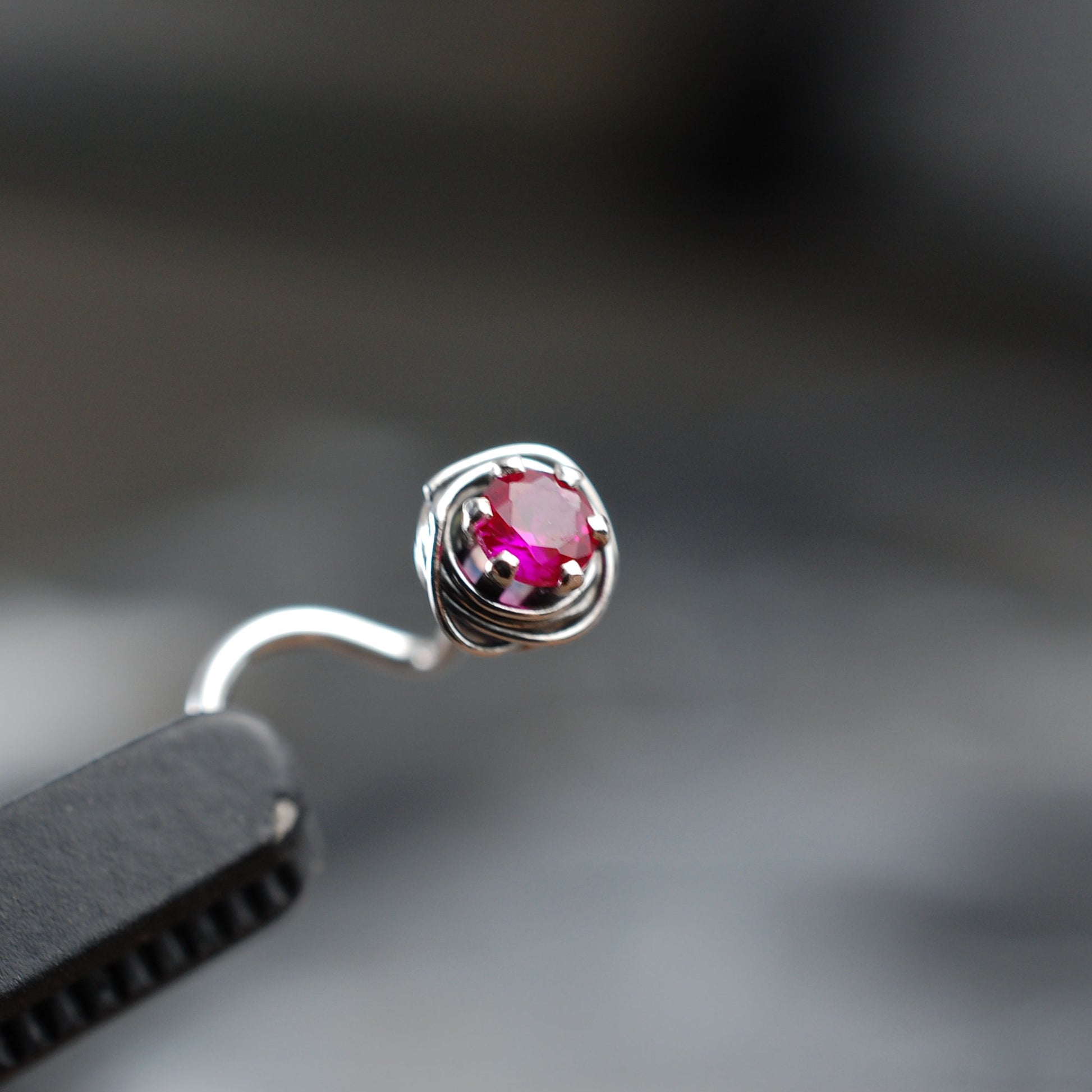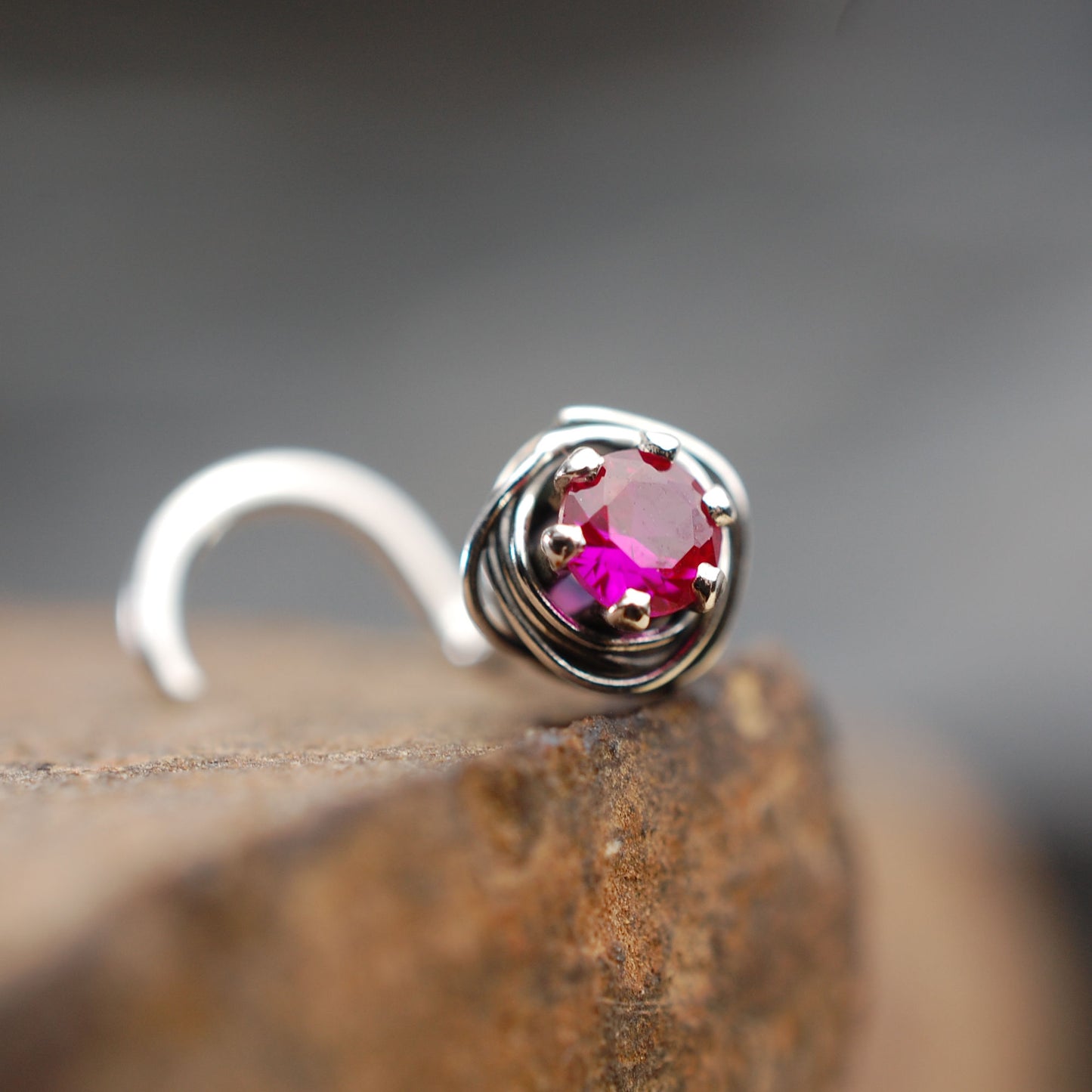 Ruby Sterling Silver Nose Stud - All Tangled Up with Rubies